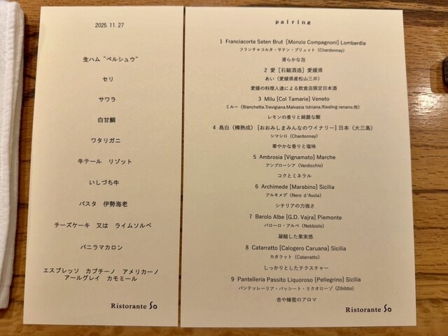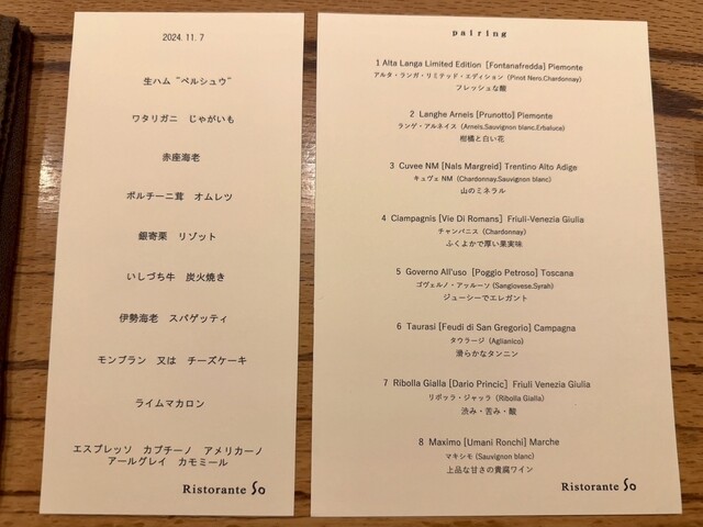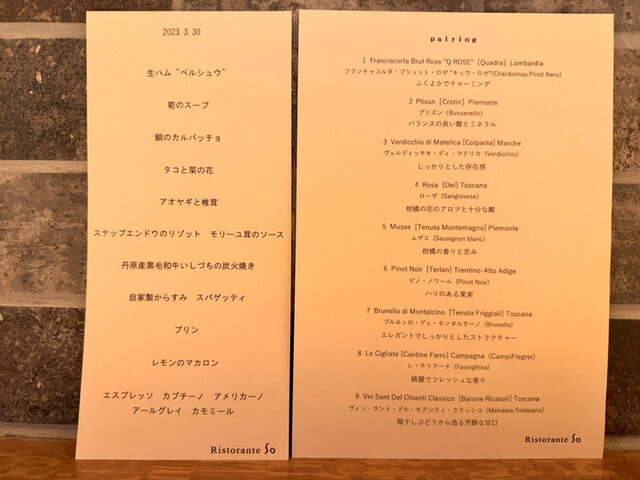 ペアリングのワインもいいかんじ。食後酒までありわりとワインも楽しいのに、お支払いもお手頃でとてもよい。今回で47回目くらいかな。