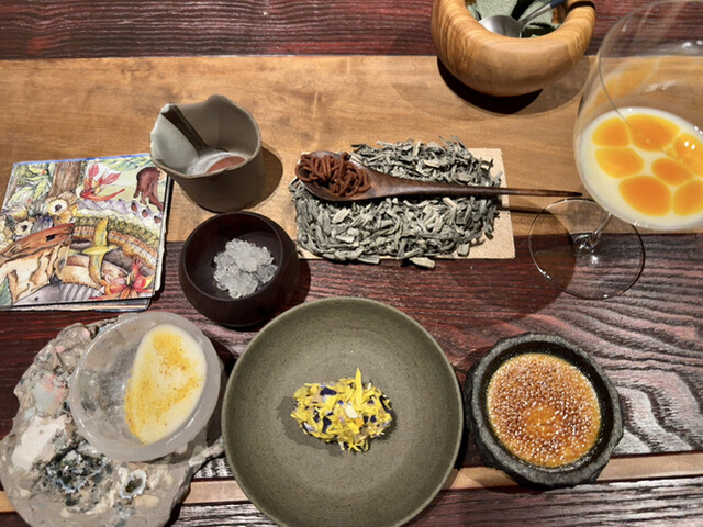 料理はもうなんだか知らない食材も多く、独特なアプローチで、現代アートの美術館に来たような気分になるし、お店を出る時には旅行した後のような気分になった。