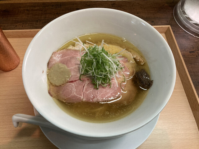 限定や味玉は売り切れで、デフォルトの塩蕎麦を選びました。