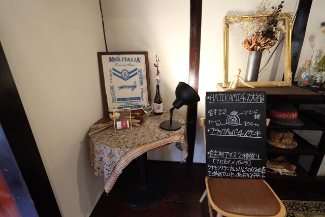お昼はカレー、夜は多国籍料理が頂けるお店です。