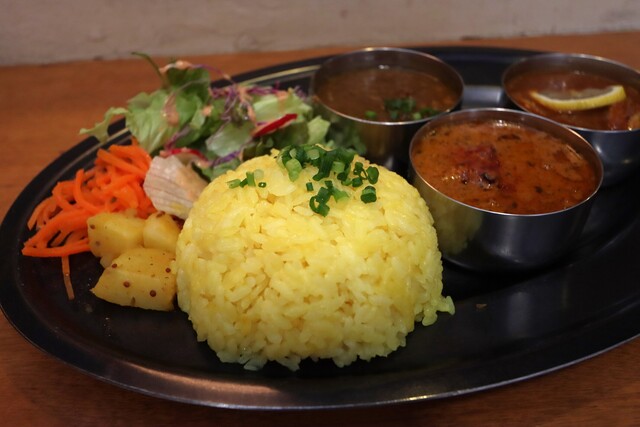 硬めに炊いたターメリックライスが嬉しいです。