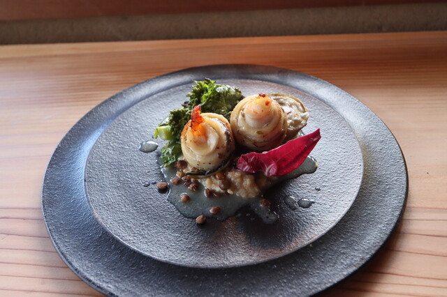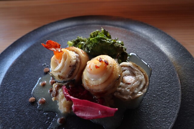 蟹とホタテという贅沢なひと品。