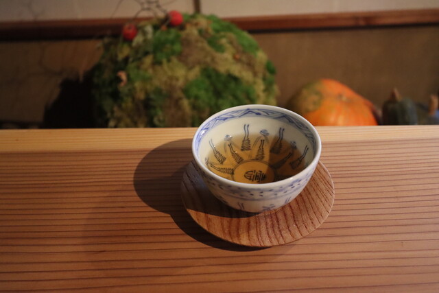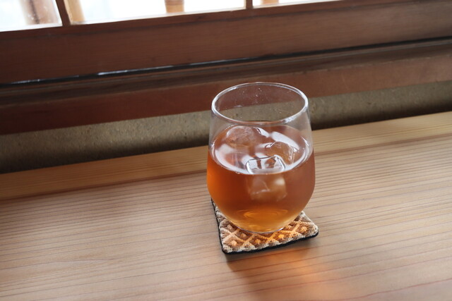 大豆油のキャンドルをつけてくれて、冷たいどくだみ茶が出ました。