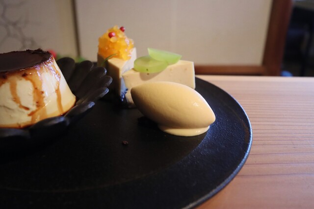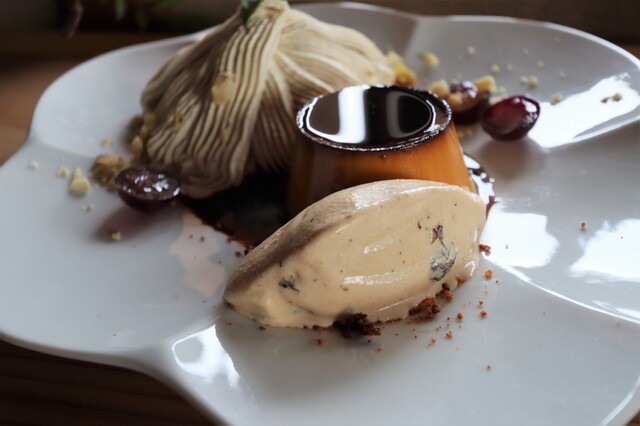 ソテーした無花果とお米のパパロア、豆乳ジェラートの内容。