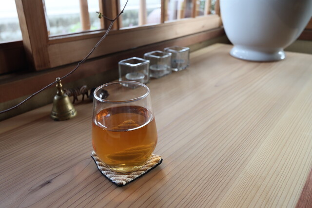プアール、ジャスミン、ハブ茶をブレンドした巡り茶で一服。