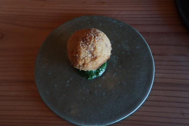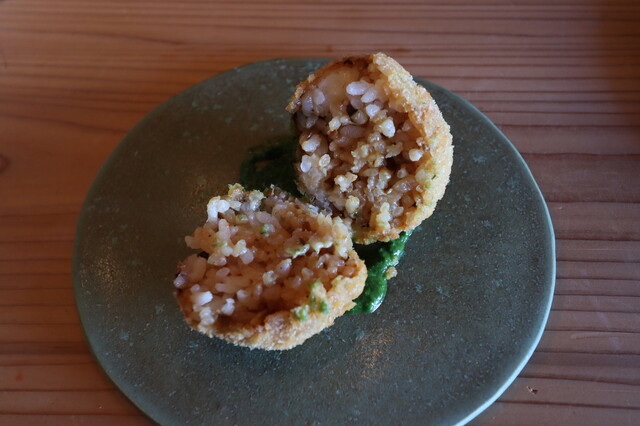●黒丸大根のグラタン ほうれん草ソース ライスコロッケ