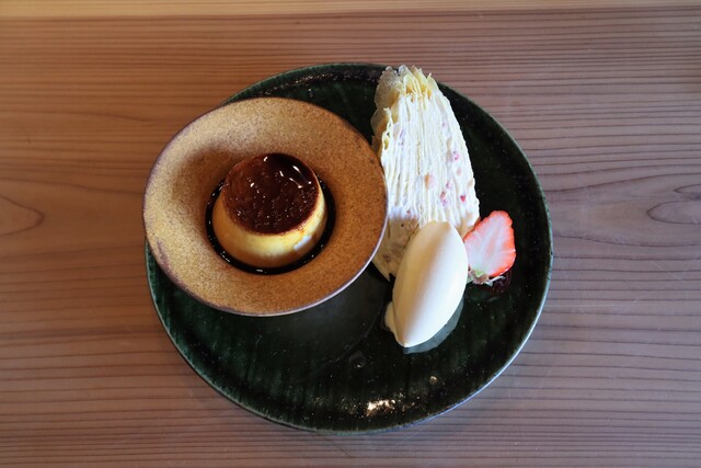 ■いちごの豆乳ムース 抹茶クランブル 自家製豆乳ジェラート