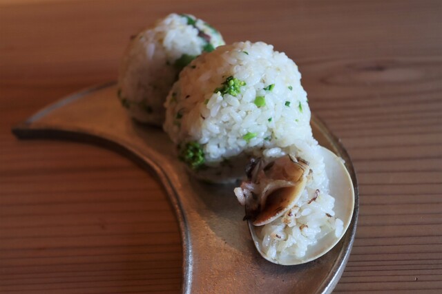 蛤の旨味が全体によく馴染んだ美味しいオムスビ。