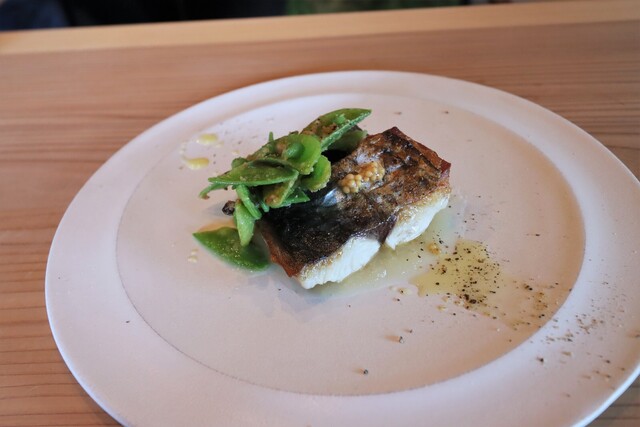 ■鰆のソテー 新玉ねぎのソース スナップエンドウ