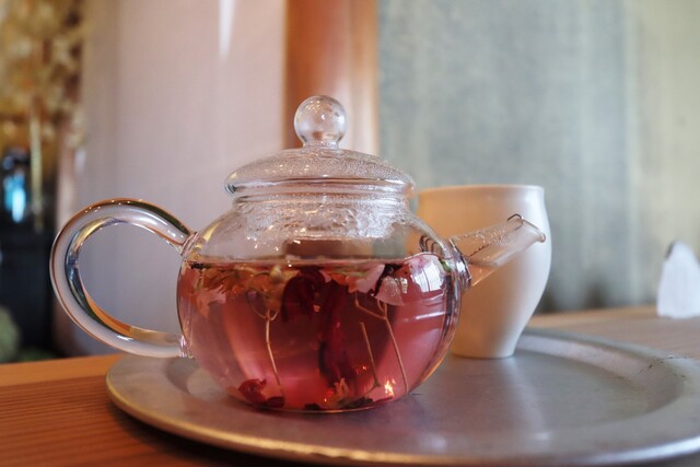 プアール、ジャスミン、ハブ茶などをブレンドした巡り茶で一服。