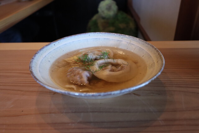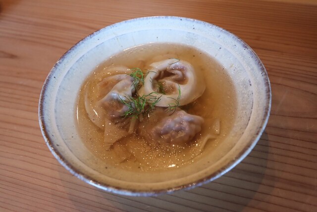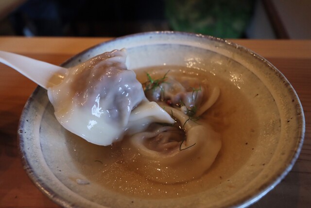 ハーブを浮かせた水餃子の中身はカラダに良さそうなモノばかり。
