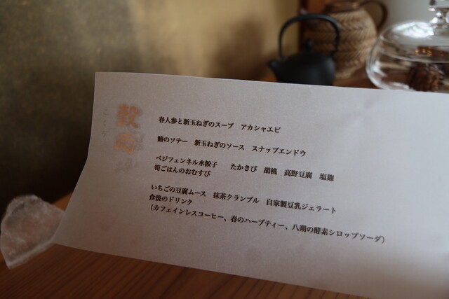 旬のモノをその季節にあった調理方法でカラダを整えるメニューを頂けます。