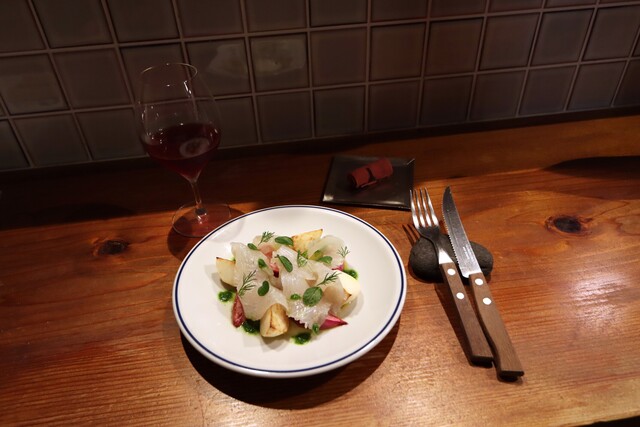コリコリのヒラメ、ソースを絡めてそれは絶品です。