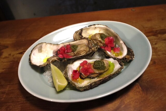 添えられたクリームチーズや柑橘を搾って頂きます。