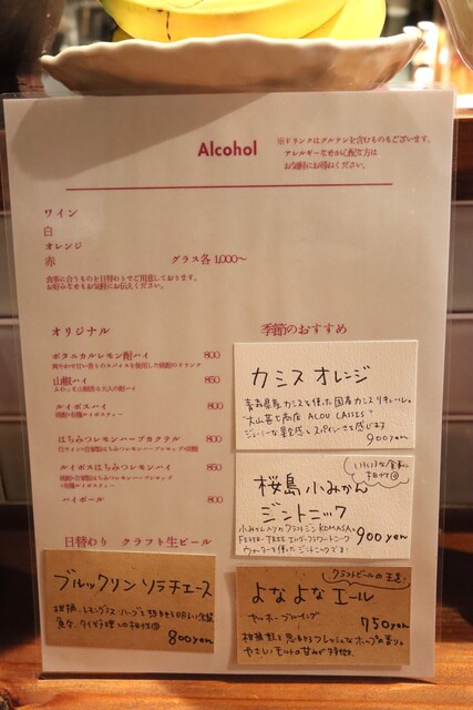 オーナー作のメニューがカワイイ。