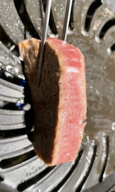 シャトーブリアンは焼きながら切っていく、焼きってるのは珍しく連れなのです笑