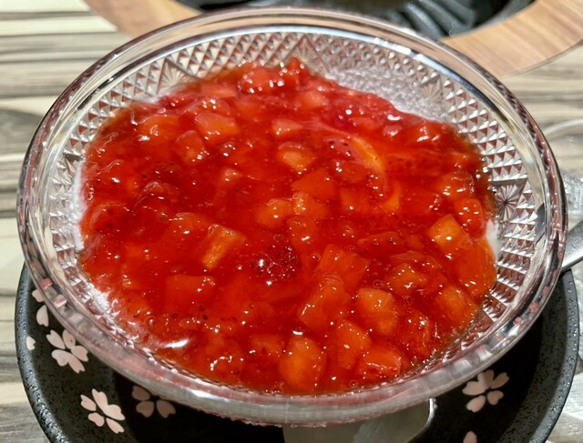 さらさら氷でスッキリといちごの甘みと酸っぱみで口の中が爽やかに焼きパリとカスタードの甘みを楽しんで甘うめぇーで締めました。