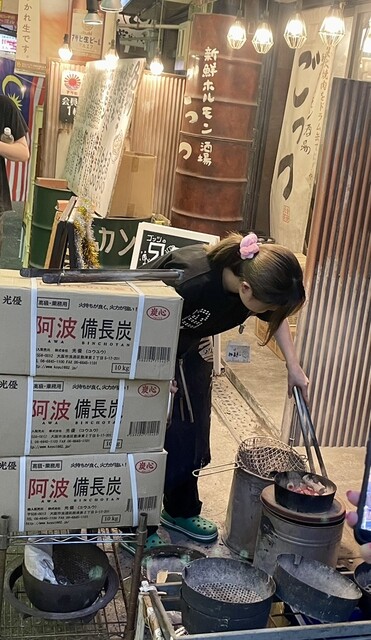 新鮮ホルモン酒場と看板を見つけ店内を見渡すとドラム缶の席?