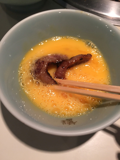 タマゴにカルビを付けて食べる。一番最初に食べた時はあまりの美味しさにびっくりした。 ここは焼肉だけ