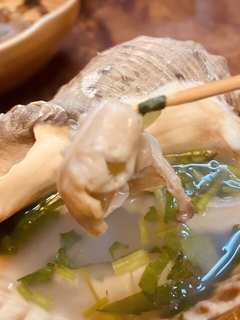 今日は神戸出張前入りで新開地にある 貝つぼ焼 大谷さんへお邪魔しました。行ってみたいお店だったのですが何もかも最高でした。こちらのお店は創業60年以上の老舗で屋台からスタートしていたそうです。新開地はなかなか興味深い酒場が多く酒呑みにはたまらない場所です。のれんにも「神戸名物 貝つぼ焼」と記されていてこれ目当てで暖簾をくぐって来ました。頂いたのは、名物 貝つぼ焼き、すじ大根煮込み、冷奴、おでん(牛すじ、大根、玉子、じゃがいも、平天、タケノコ)、漬け物、おにぎりです。貝つぼ焼きには参りました。巻き貝の入れ物の中にはぶつ切りされた大貝の身が見た目以上にたくさん入っています。貝のエキスたっぷりの出汁につかったコリコリの大貝と三つ葉は美味すぎます。この出汁だけで日本酒一本いけます笑。おでんはすべて165円の安さですがこちらも出汁が美味い!日本酒の出汁割りをしちゃいました。暖簾におにぎりも記されていたので、漬け物とおにぎりも食べてみましたがこれまた絶品のつけ具合と塩味です。最後につぼ焼きのお出汁を頂き至福の時間を満喫させて頂きました。これは来る価値ありです。