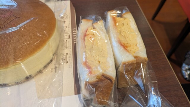 チーズケーキの焼きたてと、出来立てのたまごサンドをいただきました。