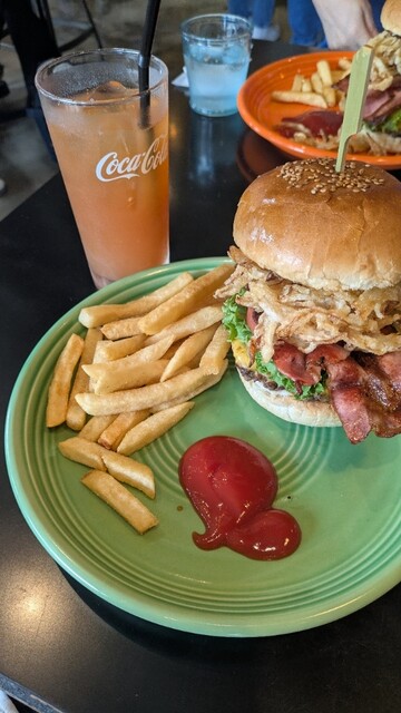 いただいたのはフライドオニオン入りのバーガー。バンズとバーガーの相性がすごく良いです。