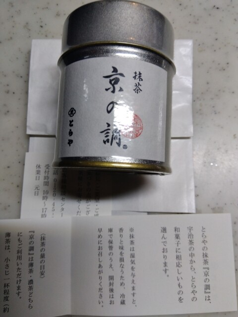 本日の生菓子は売り切れとの事。でもどうしてもお抹茶いっぷくしたいので、店員さんに、二人も来て頂いて、説明うけ、京都限定の羊羹にてお抹茶を頂くことに、、