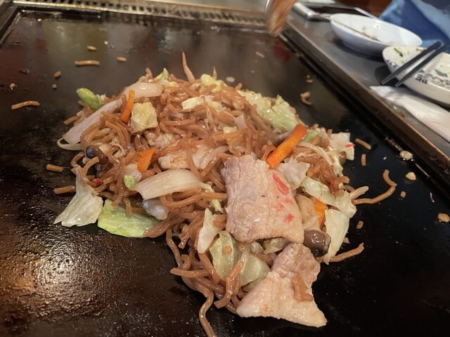 粉もんと焼肉、焼きそばにデザートまで、3人それぞれ食べたいものをどんどん注文しました