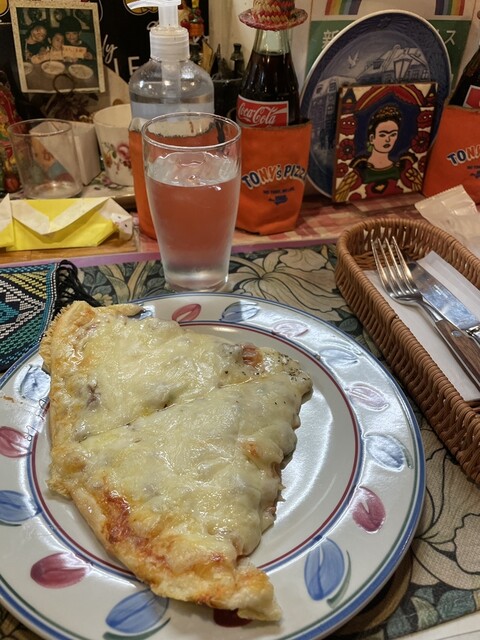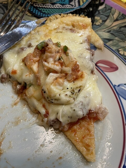 チーズがたーっぷりトロトロ、チーズの中からはひき肉と玉ねぎの粗みじん切り、あとはピーマンでしょうか