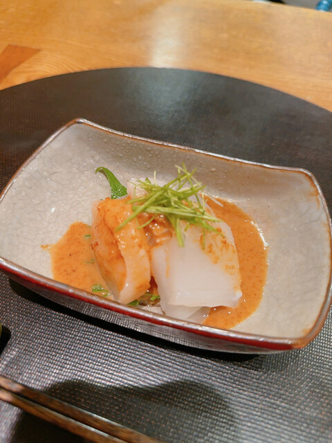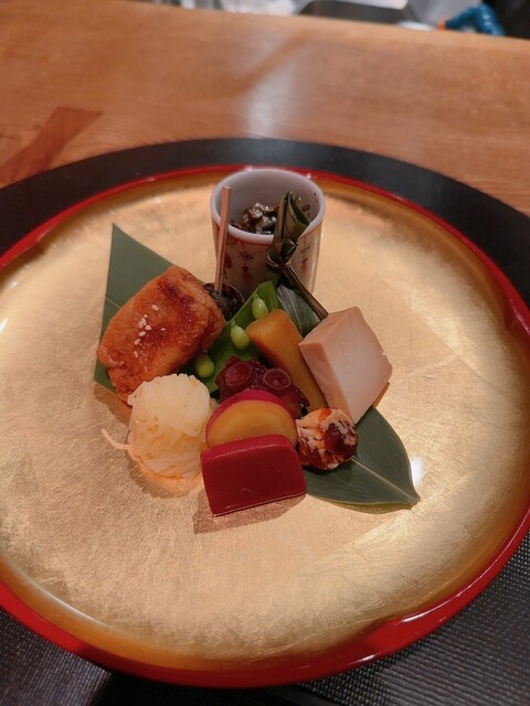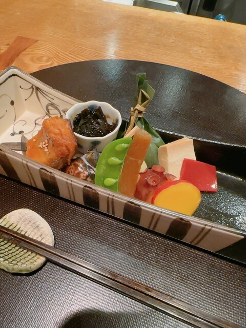 定番のコチラの八寸には〜じゃがいもハリハリからの煮蛸〜炙り生麩などなど〜いつ食べても飽きないお料理の数々です♪♬