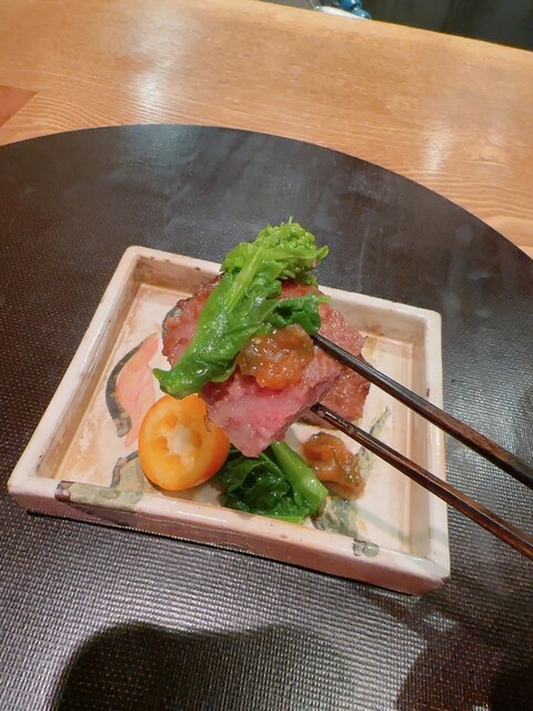 山葵の辛味に宮崎牛の旨味と相性抜群でした(^^)