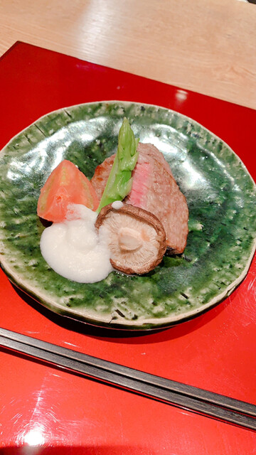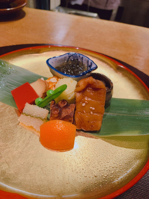 八寸に…お肉と〜八寸はタコの柔らか煮が美味しいです。