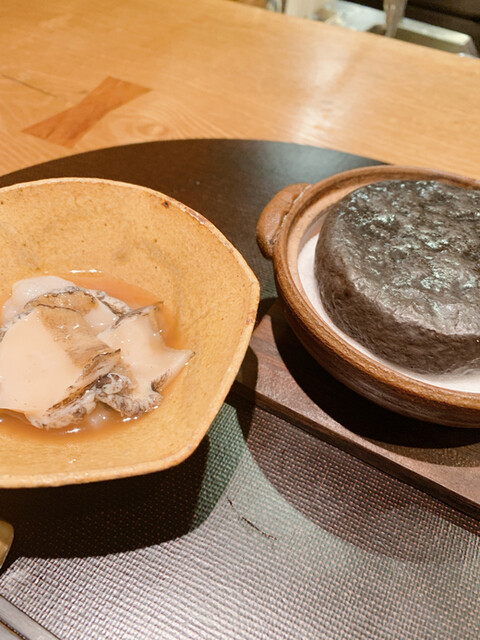 アワビの中に〜蛍烏賊、子持ち昆布、お豆腐のソースが、まろやかで美味しい。