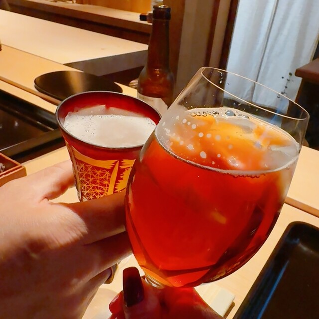 先月に引き続き今月も〜大好きなご夫婦さんからのお誘いで〜お料理は勿論の事〜隠れ家の様な素敵な佇まい‼️店内は檜一枚板の〜落ち着いたカウンター席に粋な大将・チャーミングな女将さんのふじさわさんにお邪魔出来ました♬♪