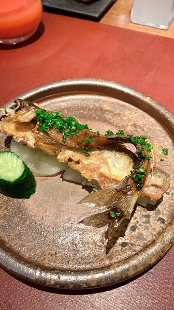 鮎のフリットも骨まで柔らかく〜骨と身と分けてあり〜食感の違うお味で!!