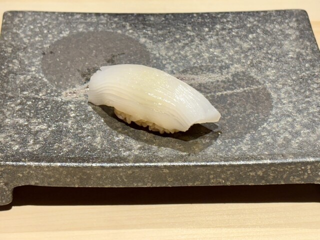 塩を少しつけて コリっと食感で生は甘く、炙りは香ばしさもあり美味しい