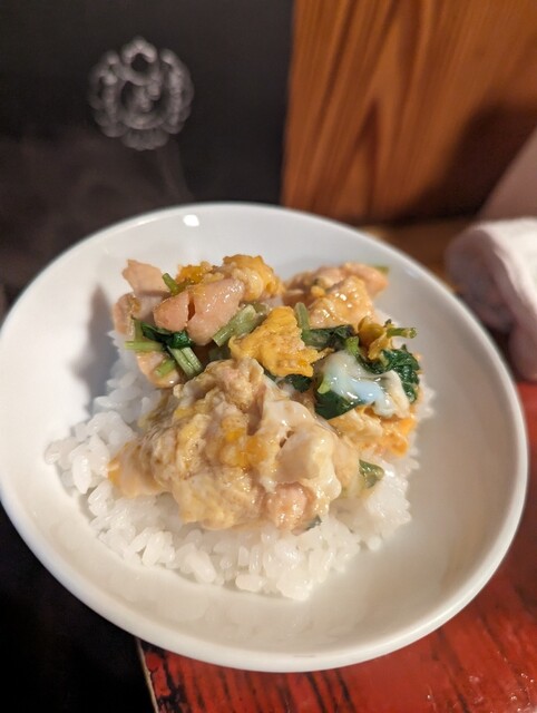 最後は旨味が出た出汁に、鳥を追加して親子丼にしました。