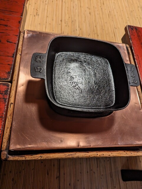 炭火で熱せられた鉄鍋に鳥、お豆腐、しらたき、ねぎがキレイに並べられしっかり火が通るのを待ちます。