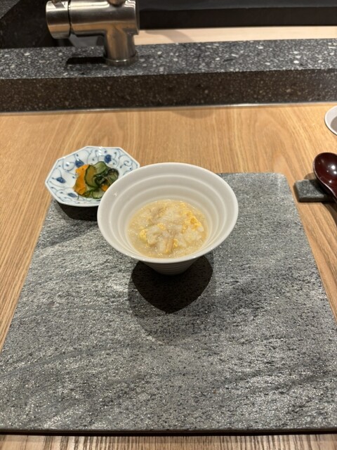 〆がそのスープで炊いたリゾット。味変でチーズを入れたような、、大分いい感じであやふやです、すいません!