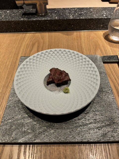 凌ぎ?が、和牛シンシン寿司瞬間スモーク、スモーキーな香りの珍しい肉寿司。スモーキーじゃなくてもいいような気もするけど、歯がいらないぐらい柔らかい、、。