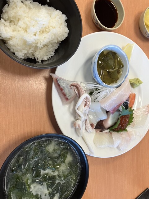 刺身もそうですが、味噌汁が染みるぐらい美味しい!!魚介の出汁とワカメの食感。