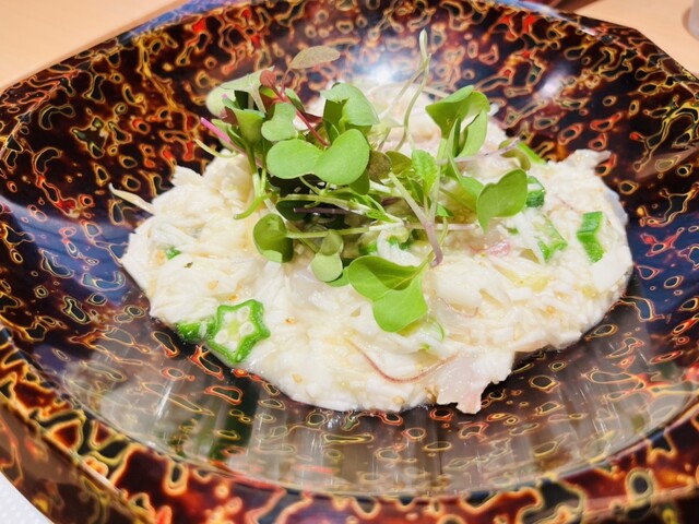 山芋オクラいろいろ入ったネバネバをスプーンで頂き乍ら 大将お任せでお酒もマリアージュ…あとは 安心してほろ酔い