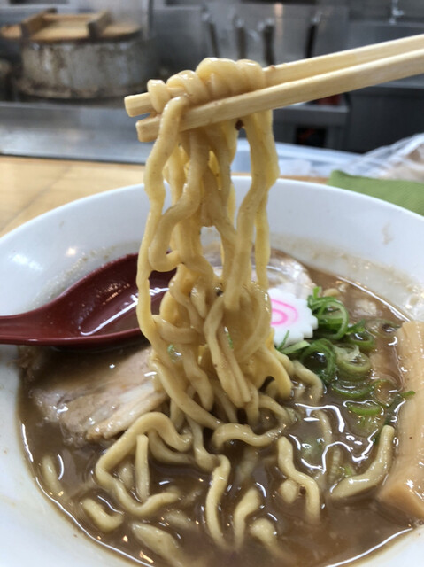 さて、実食。中太の縮れ麺が、スープをしっかりと絡めてくれるのですね。