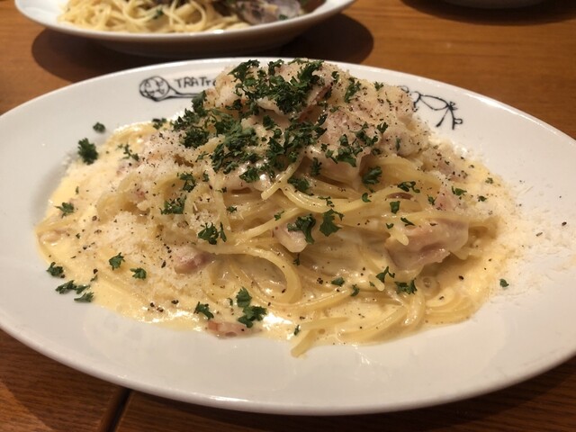 パスタはカルボナーラとボンゴレビアンコにしましたー。