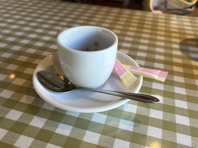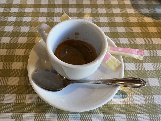 ドリンクをエスプレッソをチョイスしたんですが、こんなに小さいカップは初めて見ました(笑)。本場の苦いエスプレッソだったんですね。でも美味しかったです。