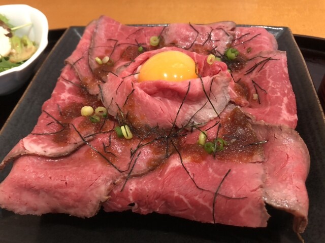 ど迫力のローストビーフ丼!上にも盛盛、横にも盛盛!