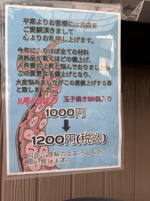 昨今の物価高に値上げ余儀なくされた様ですが、致し方なし!