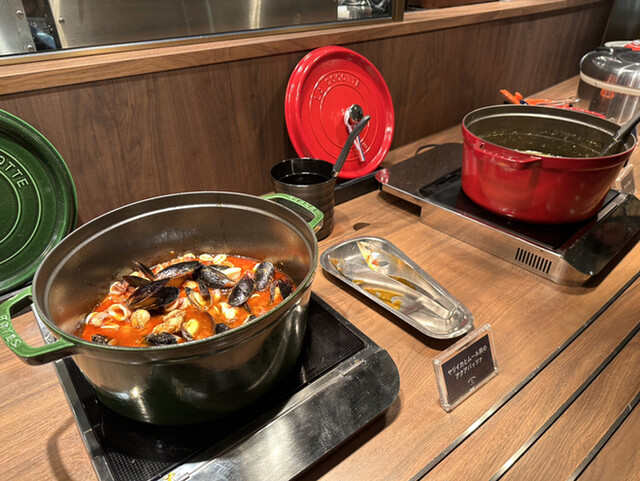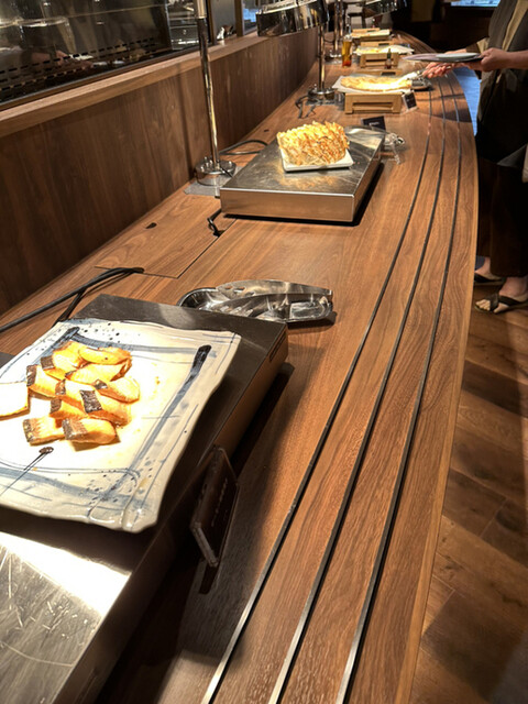 広い空間でオシャレな作りになってて和洋中華、イタリアンなどが好きなだけ食べれるだけでなくワイン、ビール、焼酎、日本酒、ハイボールも種類が多く飲み放題なのも良かったです。このホテルコーヒーやアルコールも夜23時くらいまで一階と六階の大浴場の横のラウンジでも飲めて飲み過ぎないように気をつけないとヤバいです。