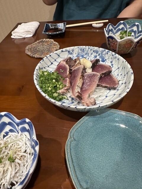エビの唐揚げ、ローストポーク、厚焼き卵、鯵のなめろう、鰹のタタキとどれも絶品で最後の鯛めしまで本当に美味しかったです。