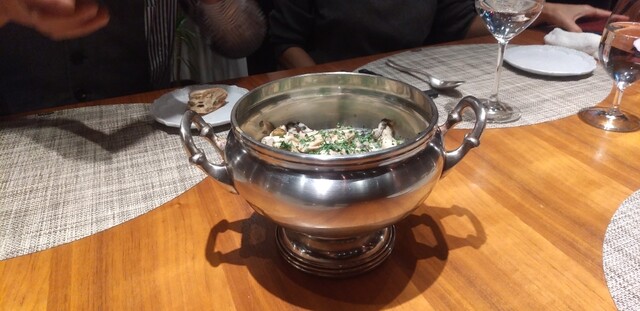 生でも食べられる新鮮な牡蠣。チーズのコクいっぱい感じられる深い味のクリームソースを纏ったリゾ。加納水産っだったかな、こんなに大きくて牡蠣のエキス、タップタプのスペシャルな牡蠣がお米より多い量で、牡蠣好きにたまらないおいしさ、お代わり―と思わず声に出してしまいました。